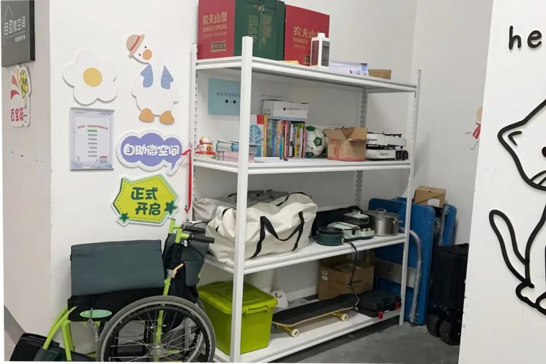 2022年底,变化发生了。几位社区居民自发申请5000元公益基金,将社区某楼栋角落里一个堆满杂物的空间,改造成了名为“百宝箱”的共享微空间。居民们把家里的闲置工具、书籍拿出来互换,在借还之间,邻里逐渐熟络,积攒起信任与善意,沉睡的社区活力被激活。