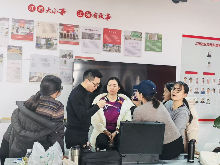 周末,奉贤区金汇镇江苑社区居委会的“江将好客厅”里格外热闹,一场个人形象化妆课程吸引来十多位学员参与。授课教师朱辉是本社区居民,今年4月以来,每个周末他都会在此为本社区与周边居民开展化妆培训,课程收费十分“公益”,每节课人均单价不足30元,报名火热。